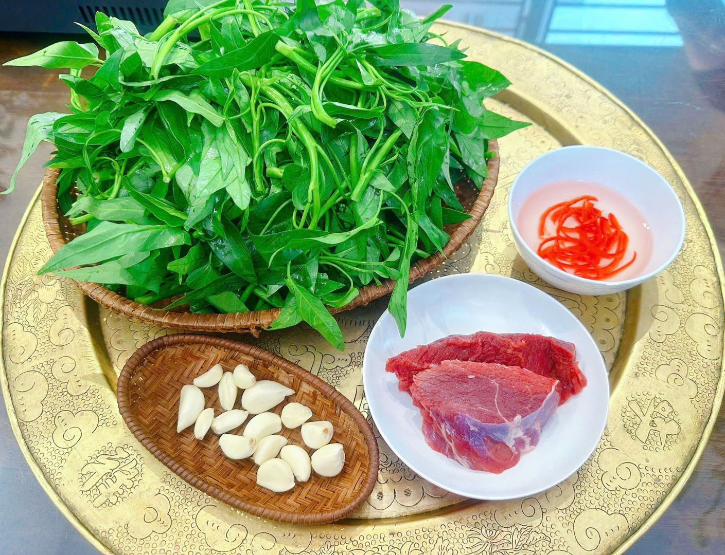 Rau muống xào thịt bò ngon sẽ cần chuẩn bị đầy đủ các nguyên liệu như sau: