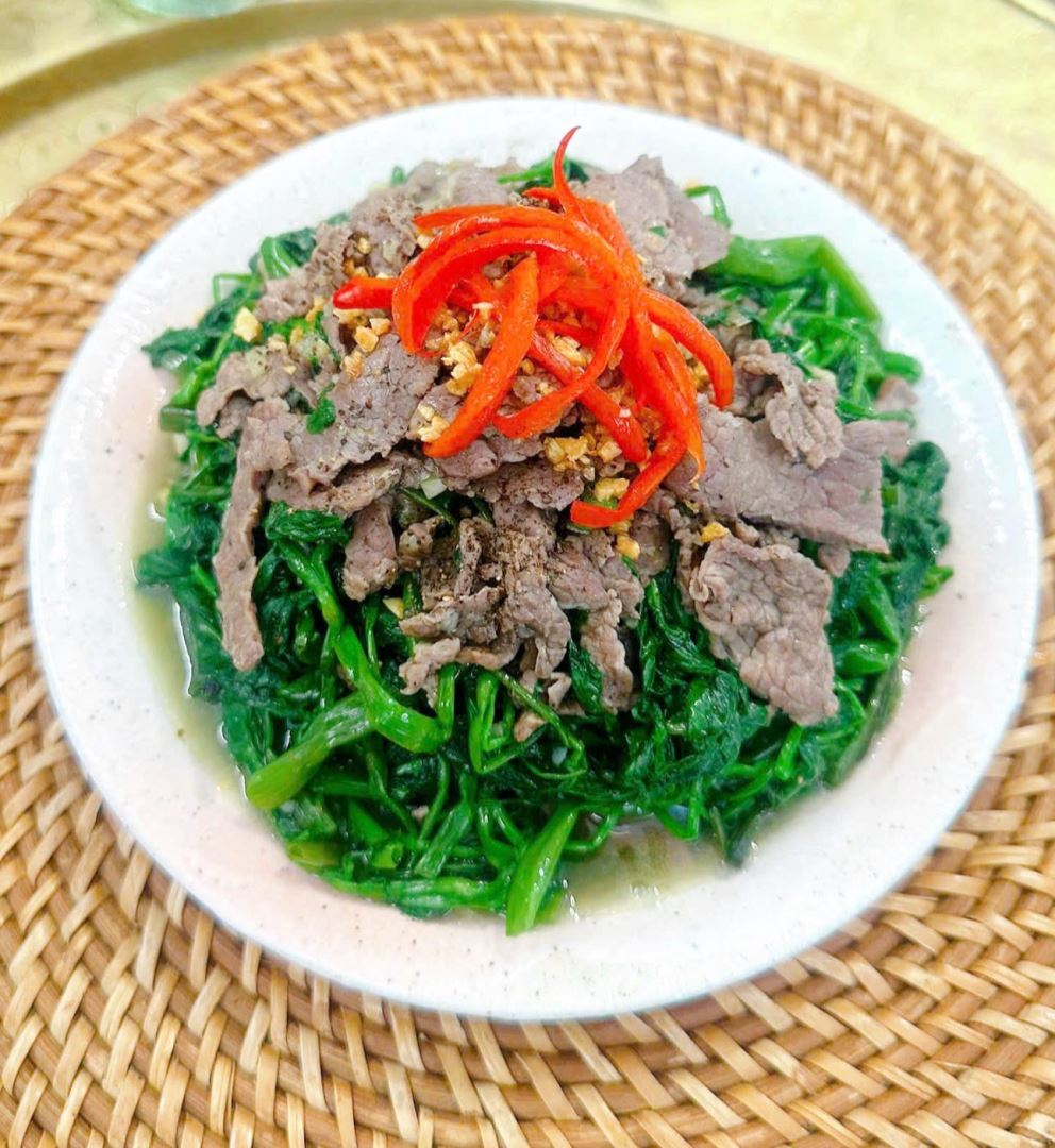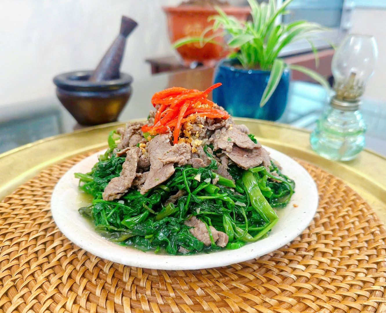 Rau muống xào thịt bò chuẩn vị và đượm sắc