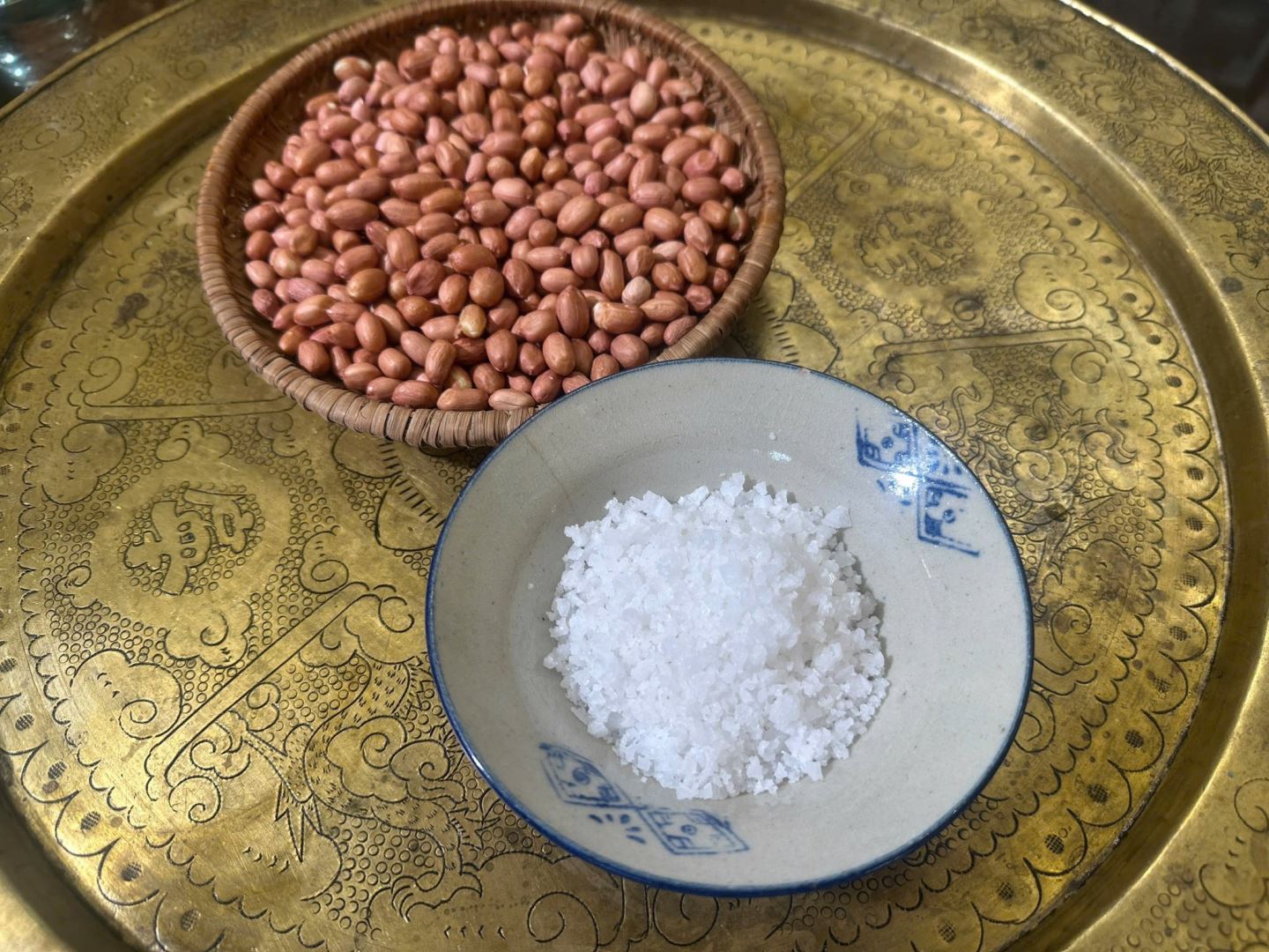 • Muối nên dùng muối hạt hoặc muối tinh xay để dễ bám vào lạc mà không gây mặn gắt.