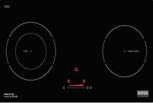 Phát triển song song cùng thương hiệu này chúng ta không thể không nhắc đến thương hiệu Giovani. Là một trong những thương hiệu nổi tiếng đến từ Italy, không chỉ thành công ở các lĩnh vực như: bếp gas, máy hút mùi, máy rửa bát....Giovani còn liên tiếp chinh phục khách hàng bằng các sản phẩm bếp điện từ chính hãng, tiêu biểu với model bếp điện từ đôi Giovani G-271SD - ( Made in Italy 100%) sản phẩm có giấy CO chứng minh nguồn gốc xuất xứ rõ ràng. Bếp điện từ Giovani G-271SD nhập khẩu sử dụng mặt kính Schott Ceran cao cấp, khả năng chịu nhiệt lên đến 1000 độ C, chịu sốc nhiệt đến 800 độ C ( trong khi nhiệt độ của bếp chỉ cao nhất là 240 độ C nên độ an toàn của mặt kính). Linh kiện bên mâm điện EGO - 2 vòng tự động ngắt nhiệt phù hợp với mọi kích cỡ xoong nồi, bếp được trang bị hệ thống điều khiển cảm ứng dạng slider với 9 mức độ điều khiển,hệ thống phím được thiết kế rõ nét, người dùng có thể chủ động để điều chỉnh công suất nấu cho phù hợp.