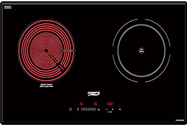 3. Bếp điện từ Chefs: thiết bị nhà bếp nổi tiếng đến từ Châu Âu, bếp điện từ kết hợp Chefs luôn ứng dụng những thành tựu mới nhất của khoa học công nghệ để cho ra đời những mẫu bếp điện từ cao cấp, với nhiều tính năng ưu việt. Tiêu biểu với model bếp điện từ Chefs EH-Mix 366 ( Made in Germany) đây là mẫu bếp điện từ đôi được sử dụng toàn bộ linh kiện của Đức như: mặt kính Schott Ceran, mâm từ, mâm nhiệt, hệ thống bảng điều khiển…trước khi xuất xưởng sản phẩm còn được kiểm nghiệm chặt chẽ về chất lượng, độ bền. Bếp điện từ Chefs EH-Mix366 có kích thước 75cmx45cm phù hợp với những không gian bếp việt.