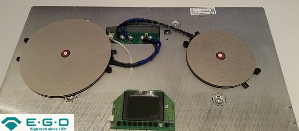 + Mâm nhiệt hãng E.G.O: Nếu như trước đây các sản phẩm bếp hồng ngoại được sử dụng bằng bóng đèn halogen hoặc sơi dây mayso tuổi thọ của những loại này chỉ được 2500h, thì ngày nay với bếp điện từ của Đức bên hồng ngoại được sử dụng bằng sợi dây cacbon siêu bền, được các chuyên gia kiểm định thời gian hoạt động lên đến 8000h, tương ứng với thời gian đun nấu của gia đình Việt là trên 21 năm.