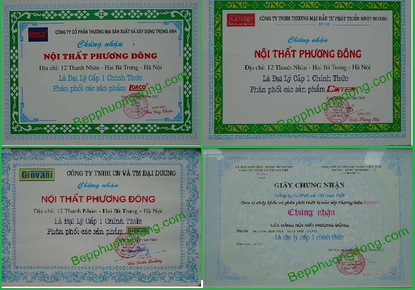 Giấy chứng nhận Bếp Phương Đông là đại lý cấp một của các hãng