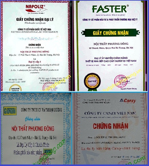 Giấy chứng nhận Bếp Phương Đông là đại lý cấp một của các hãng