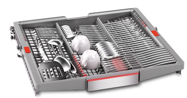 - Hệ thống giỏ VarioFlex Pro với ngăn kéo Vario3 Pro: tối đa khả năng điều chỉnh nội thất của máy rửa chén ở cả ba tầng với trọng tải hiện đang được đánh dấu bằng các phần tử đỏ trong giỏ.